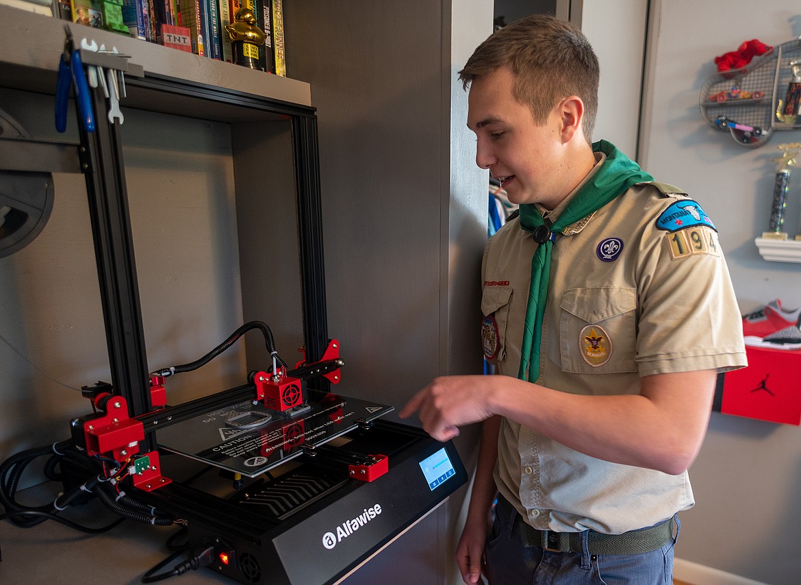Many of the scouts have focused their efforts on sewing cloth masks, most of which will be donated to the Montana Vets Home. Another troop member, junior assistant scoutmaster Kyler King, owns a 3D printer and is fabricating N95s for the hospital along with Rice. Both Rice and King were introduced to the machines through their industrial arts class at Columbia Falls High School.