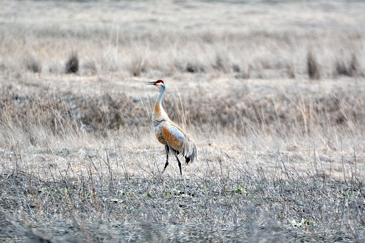 “To the east that early morning, strange dashes of red color shone through the blowing tops of prairie sedges where the sun touched the crowns of Sandhill cranes. That blood-red glint of life in the brown grasslands, that long calling — why should such fleeting moments pierce the heart? And yet they do.”