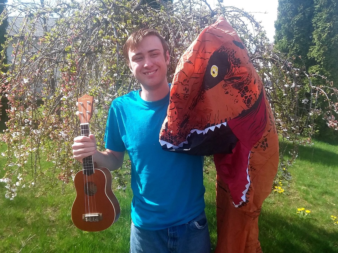 Jake Ford, 19, of Rathdrum, contacted The Press to reveal the true identity of the ukulele-playing T-Rex seen dancing and waving to drivers on Sunday. The young man is in his senior year at iSucceed Virtual High School and he really just loves to make people happy.