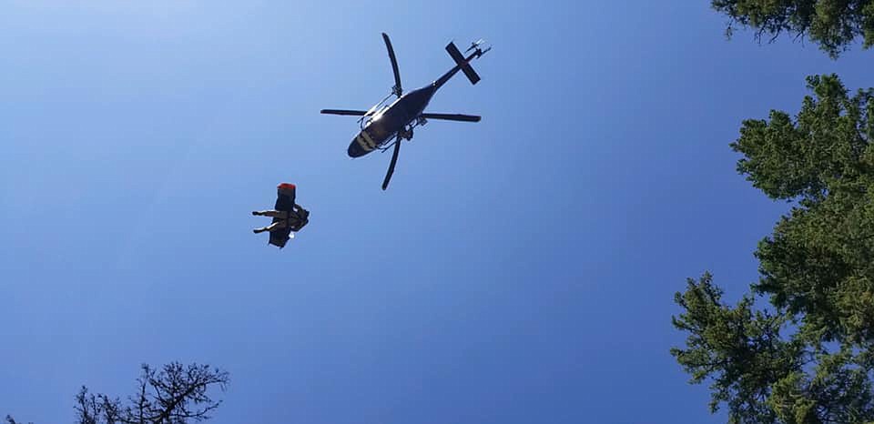 Fire Department members helped package the woman to the hoist spot where Two Bear lifted the woman out of the area before transferring her to a Kalispell Regional Medical Center A.L.E.R.T. helicopter for transport to the hospital.