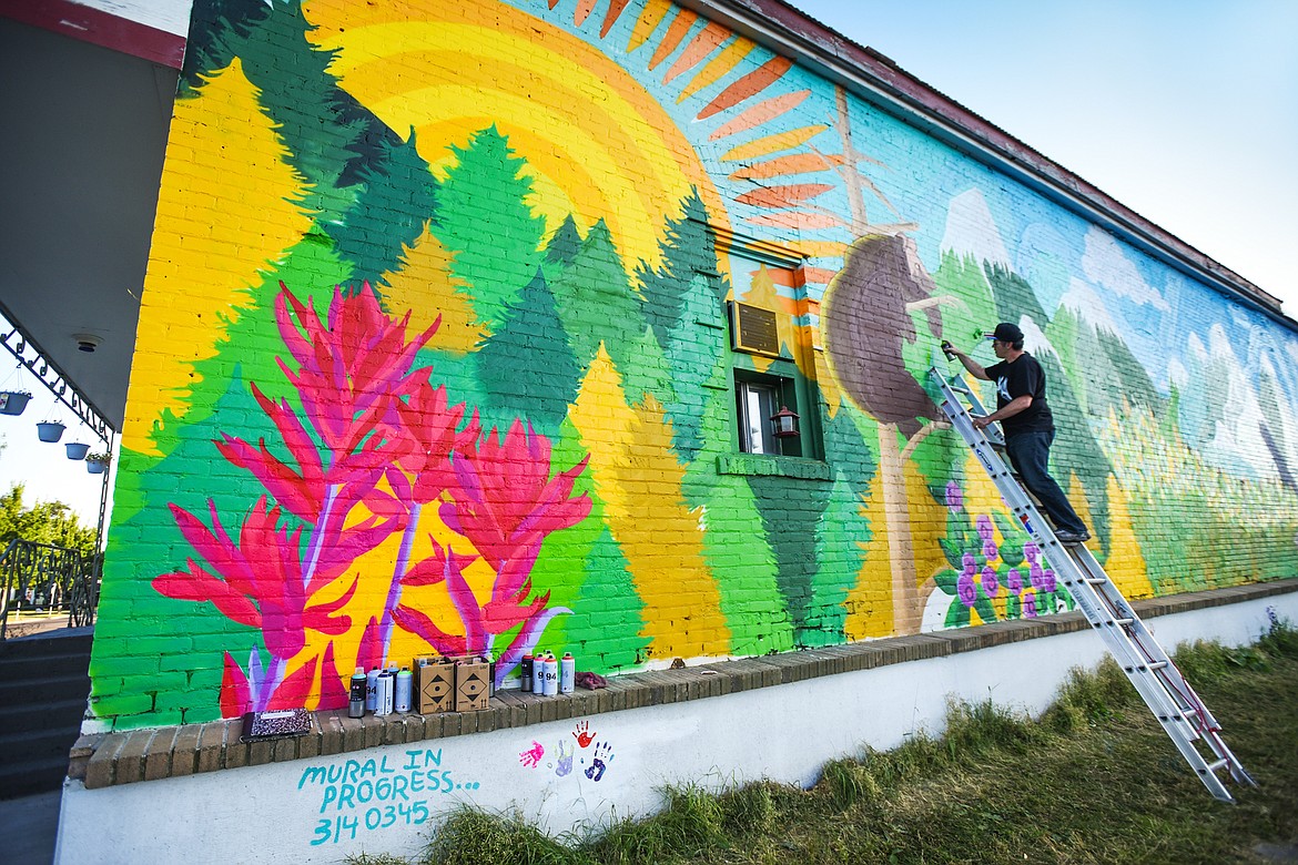 Artist Thomas Valenica, of Creston, is in search of a few helping hands. Valencia is in the process of creating a mural along West Center Street at Fifth Avenue West in Kalispell. He’s doing the painting himself but he’s in search of anyone willing to “lend a hand or two” in hopes of filling a white panel of space beneath the mural with painted hand prints.