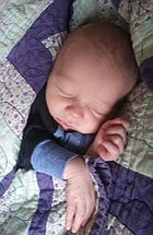 Baby boy Lucas Warner is described as having blonde hair with blue eyes, two feet tall and 25 pounds.