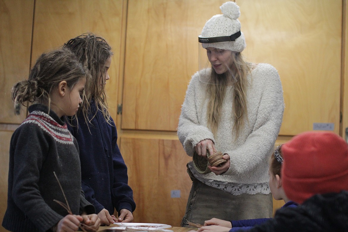 On Thursday, students in one classroom were learning how to weave baskets using rehydrated pine needles.