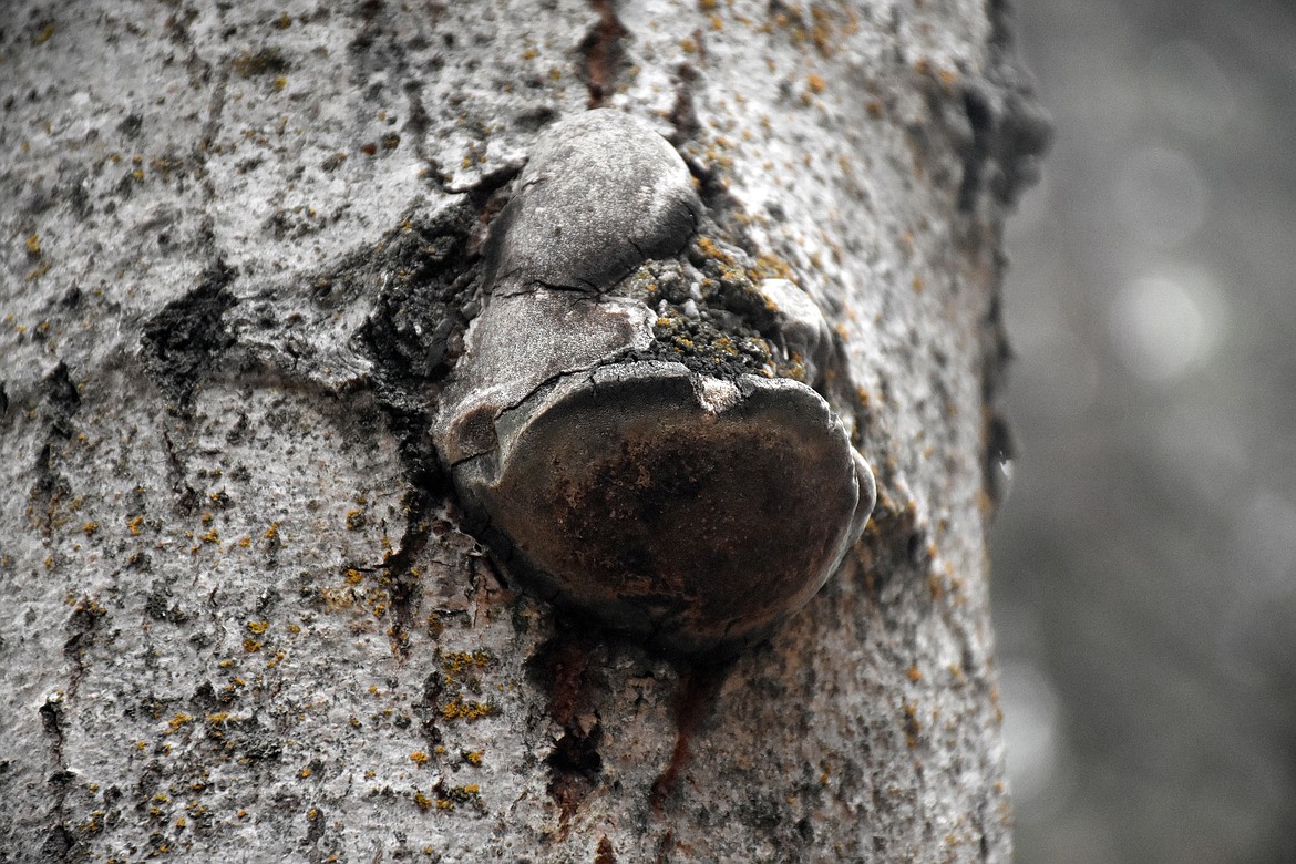 As the mycelium absorbs nutrients in the wood, it decomposes the wood in the process. Therefore, shelf fungi are considered a major wood rotting fungus that cannot be killed once a tree is infected. The rot caused by conks attacks the top of the tree, the heartwood inside and the base of the stem.