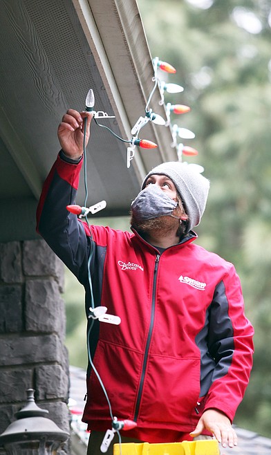 Andy Spears, Senske Services branch manager, Coeur d’Alene Division, and his Christmas Decor team spent the morning and early afternoon stringing lights along the railings and around the home, and placing other decorations, including twinkle lights, on the property.