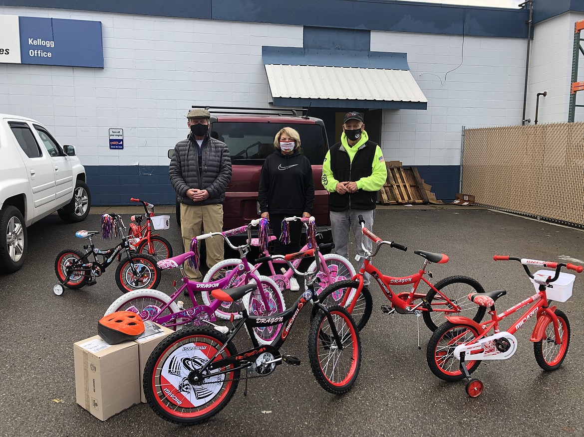 After getting in contact with Melba Gust at Santa's Workshop in Kellogg and Jae Jean Achord with the Wallace Christmas fund, it was decided that the 10 bikes the union had to donate would be split between the two groups.