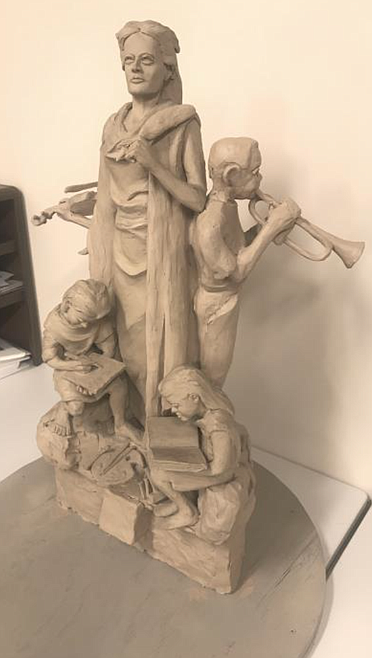 “The Spirit Of Coeur d’Alene,” a 6-foot-tall bronze statute, would feature an upright woman standing over four children, each engaged in some form of arts or learning.