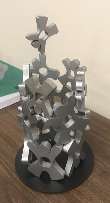 “Together” would be a stainless steel sculpture between 3 and 5 feet high, as well as between 10 and 14 feet in diameter. The piece uses humanlike figures in different stages of play.