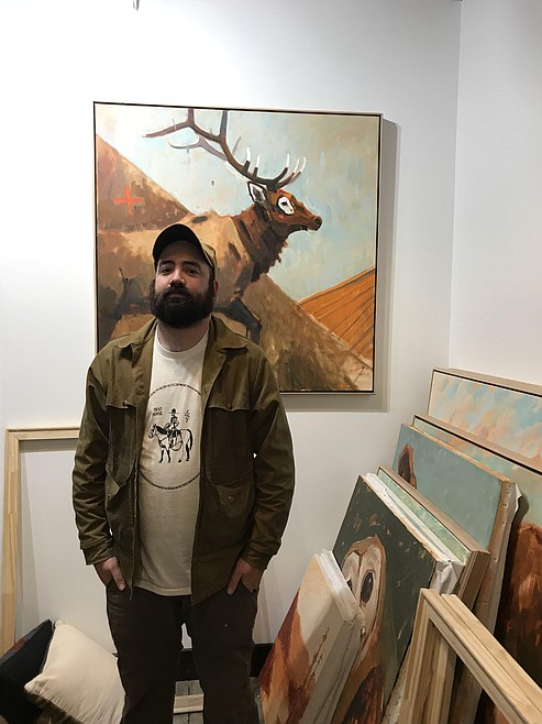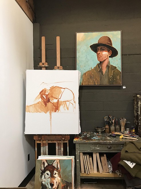 “When my wife and I started dating it was just me hanging out in her apartment and painting cause she had more room than I did. So all of our dating was we’d just hang out while I painted and she’d read books and we’d chat. Then I started a tree service. It just wasn’t what I was supposed to be doing even though we were good at it and we were doing well it just wasn’t the thing.” Now he spends his hours in a lofted studio, painting what he loves. “I do oil on canvas and my wife does pottery-we just got her studio set up at home. And it’s all I do--I really love it. My style is contemporary western wildlife-that’s how I label it. I just want to paint Idaho/Montana culture, history, and wildlife. I love being outside and grew up reading Louie L’Amour books. I just love the Old West and the outdoors.” His passion has allowed himself and his family to live the life of their dreams, even during an unexpected year.