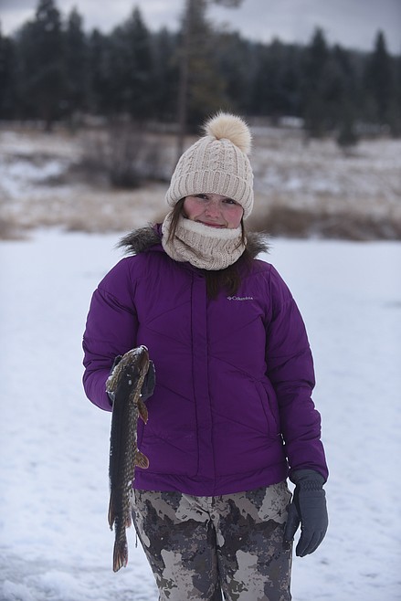 Peterson, who recently bagged her first buck, a whitetail 3x3, caught a 21-inch northern pike from the icy waters of one of the Flathead’s favorite ice fishing venues.