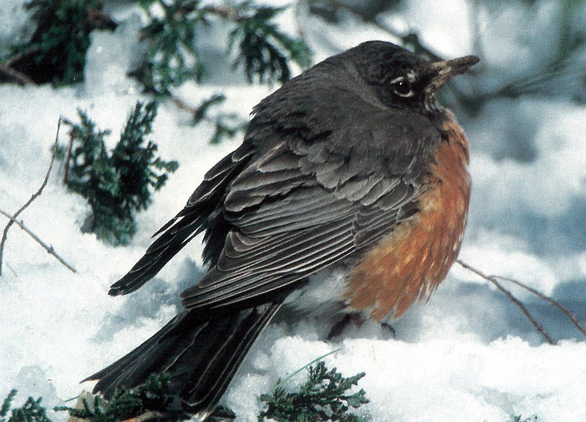 This is an exciting and fun (plus hope-creating) thing that seems to happen every year here, and while no one can figure out where they went, it seems obvious that the flock of migrators was made up of several smaller flocks or simply pairs of birds that would return in smaller numbers in due time. I’m wondering if the big flock was comprised of mostly males, to be joined later by their mates — which seems possible, since ”my” long-time two pairs of robin residents seemed to always be preceded by the males who “batched it” for a few days (or weeks) until their mates joined them.