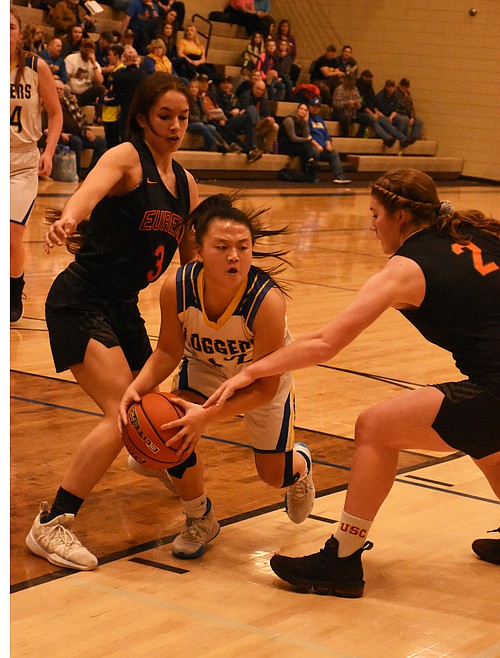 The Loggers hit the Lions with a zone press but played man-to-man defense during most of the game. Eureka also relied on man-to-man.