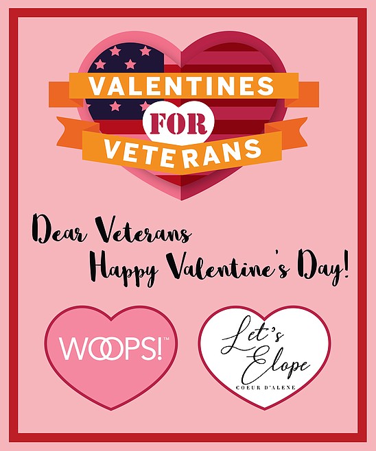 Valentines for Veterans will be held from noon to 6 p.m. Sunday at Woops! at 119 N. Fourth St., Coeur d'Alene.