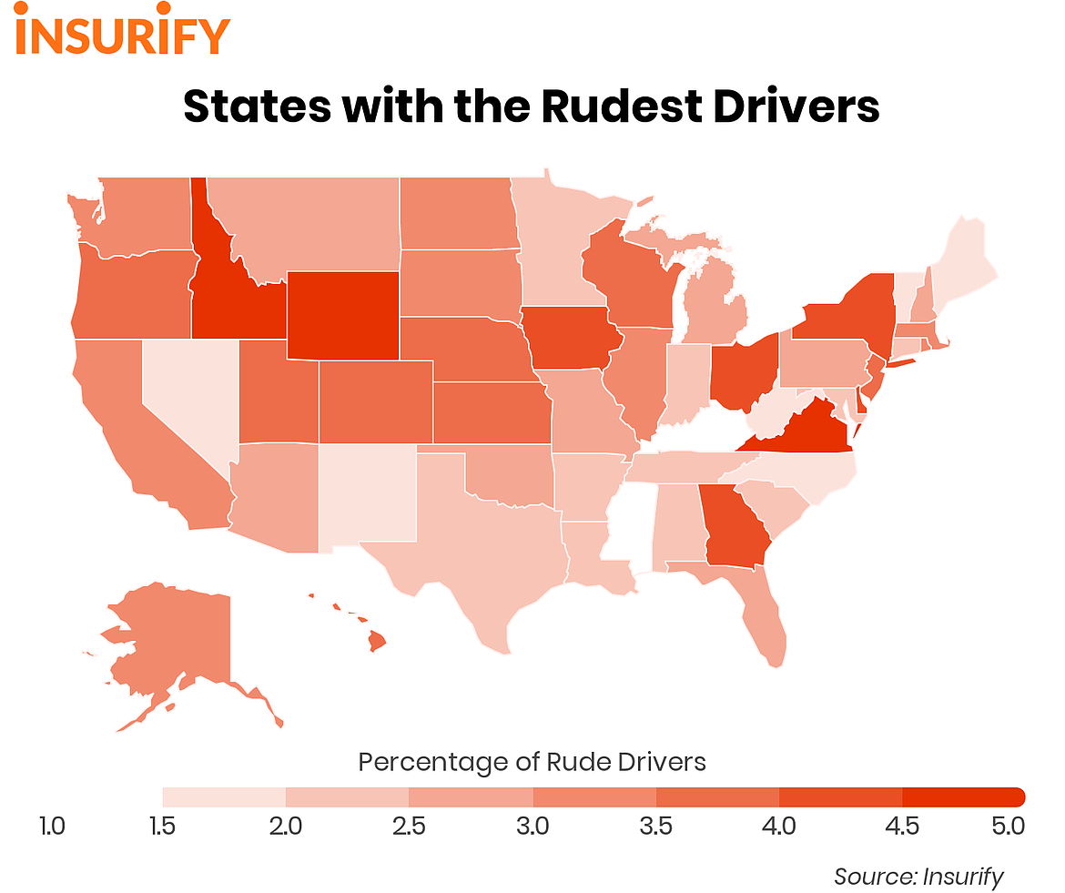 In Idaho, 47.5 drivers out of 1,000 were cited for rude driving behavior. The national average was 29.6 per 1,000 drivers.