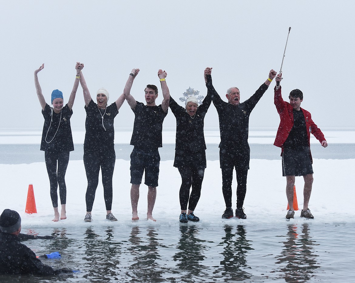 Folks braved the icy waters of Whitefish Lake Saturday morning for the annual Whitefish Carnival Penguin Plunge, which raises money for Montana Special Olympics.