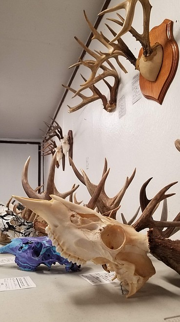 Walt Dinning managed the horn contest that featured Boone & Crocket Certified Scoring. Horns and mounts lined walls and tables.