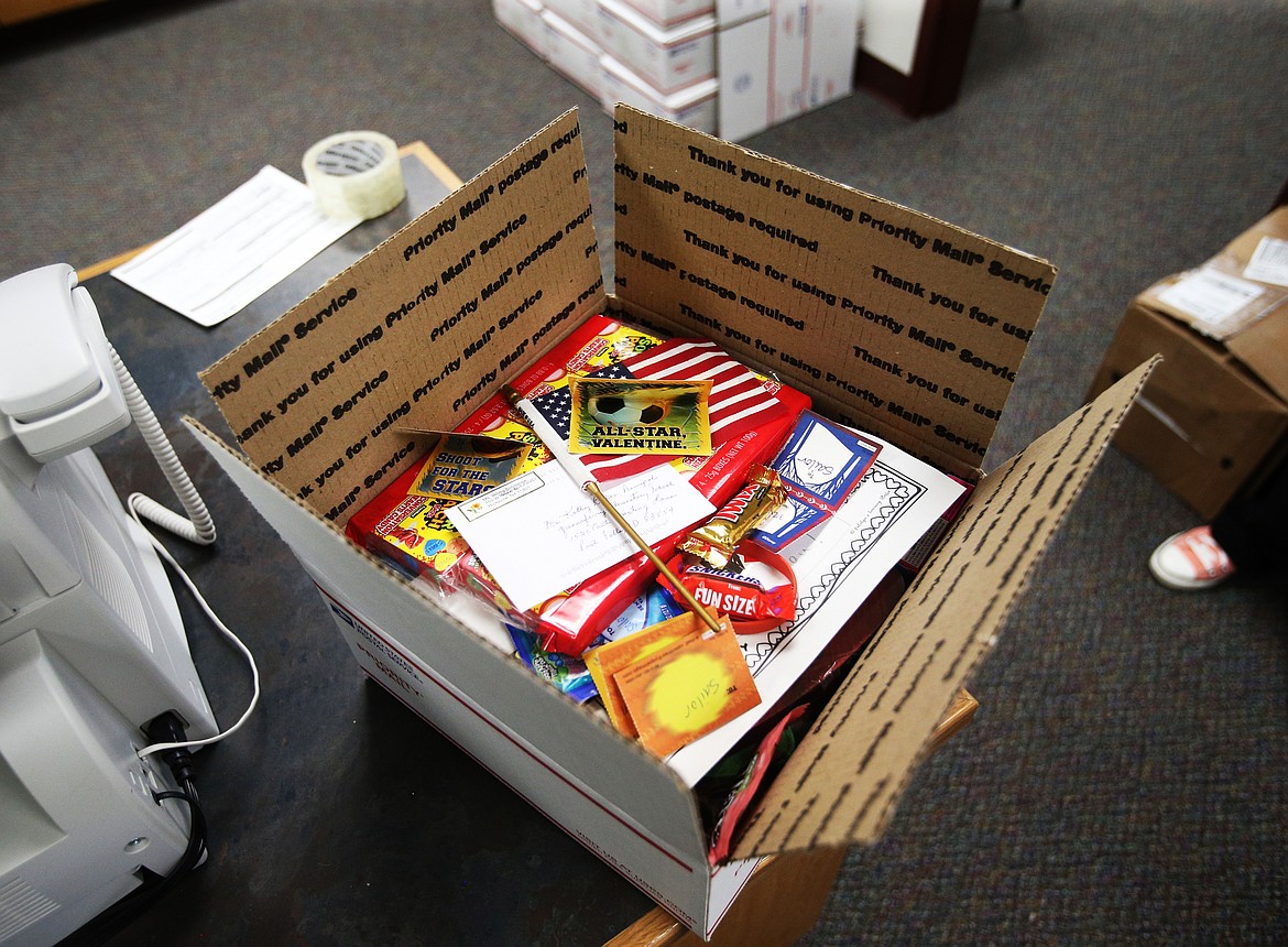 POST FALLS — Packs of gum, hand-signed valentines, candy bars, goofy glasses and warm socks.