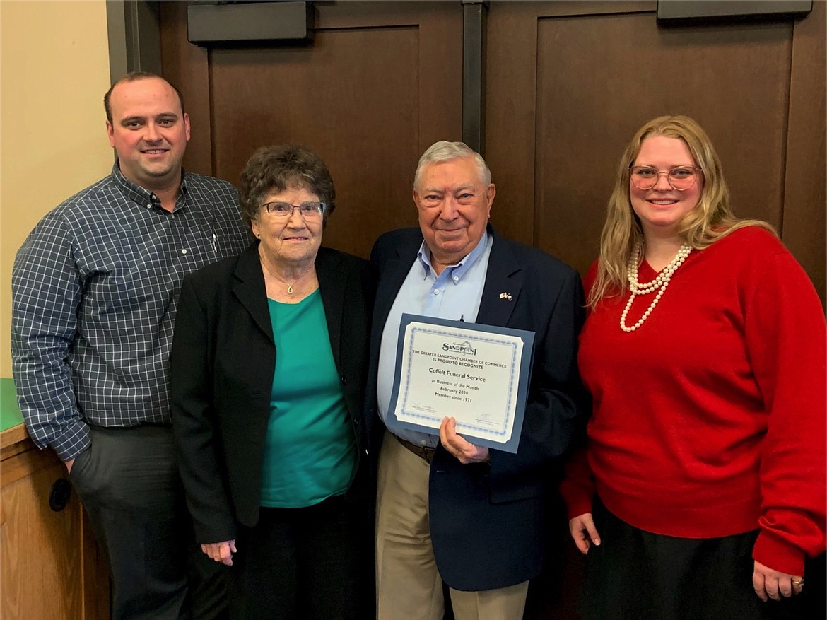 Greater Sandpoint Chamber of Commerce officials honored Coffelt Funeral Service, a longstanding chamber member, as its February Business of the Month.