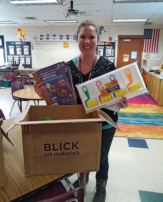 Art on the Green treasurer Anne Solomon and her team have been visiting schools in Coeur d'Alene and four in Post Falls, donating $500 in art supplies to those that did not receive a gift from Art on the Green last year. The deliveries are continuing this week.