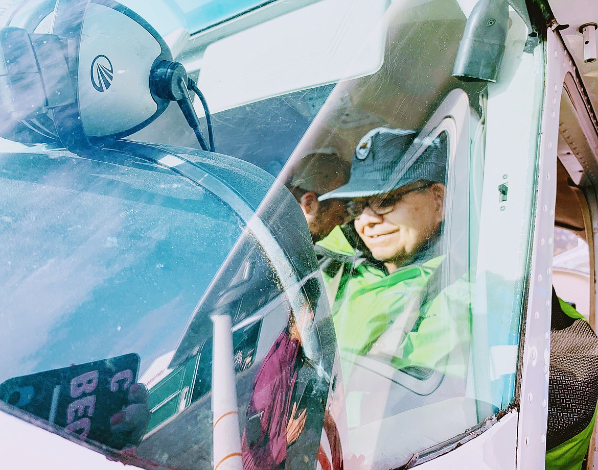 “Charlie is a man of few words, and one day, he told me, out of the blue, ‘Candy I want to fly in an airplane and I want to fly one,’ — he never had been in a plane,” said Beck. “So, I got help from Mary Joseph who is a part of our group, and she made the phone calls to the airport, set the appointment up, and made all of the arrangements.”