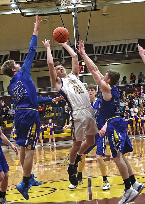 Pirate freshman Jarrett Wilson helped the Pirates overcome a nine point deficit against Libby with less than two minutes remaining in the fourth quarter at the Joe McDonald Center in Pablo Saturday. (Bob Gunderson photo)