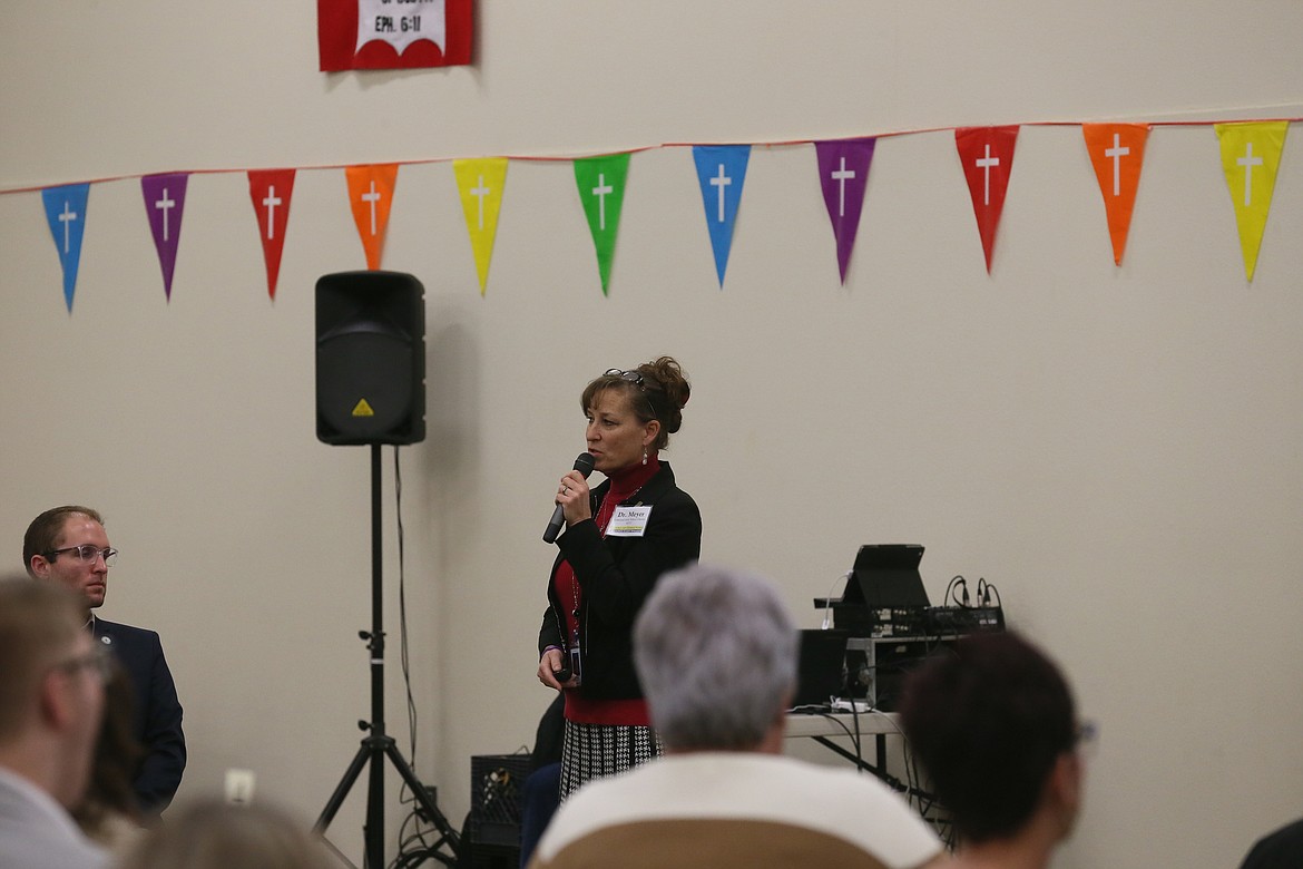 Dr. Becky Meyer presented the audience with outstanding statics from Lakeland School District’s work.