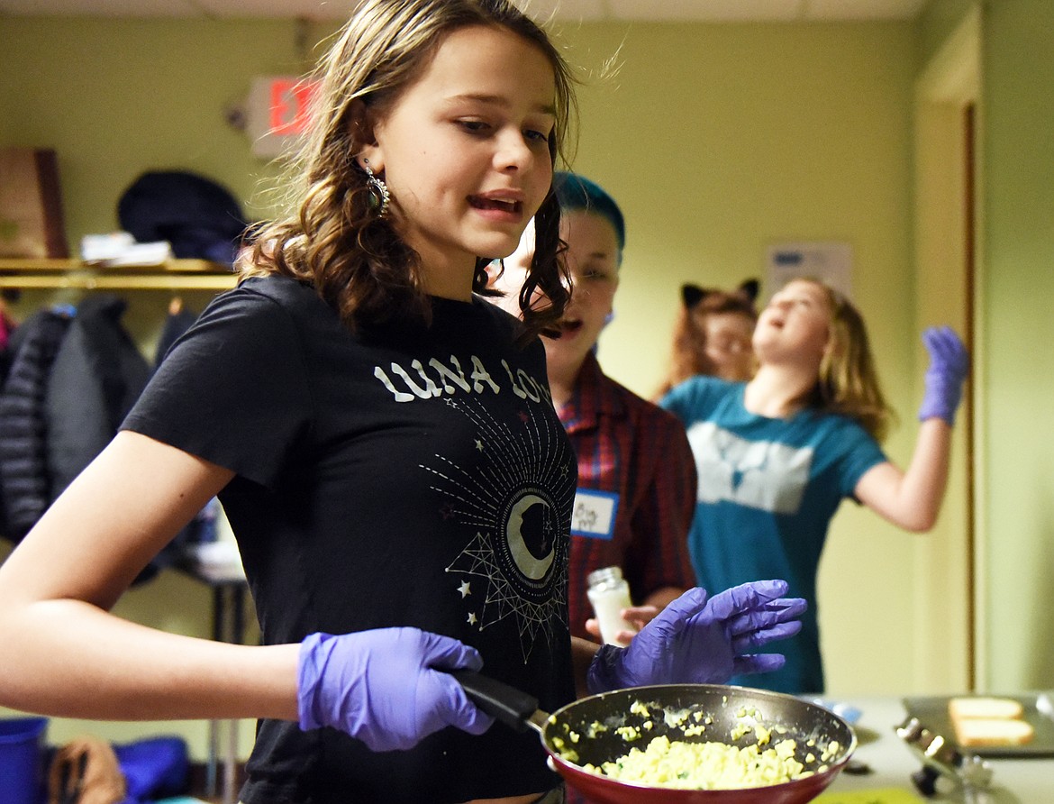 Divided into four teams, chefs ages 11 to 17 competed to use appliances such as a toaster oven and hot plates to combine spinach, cream cheese, eggs, cinnamon and a buffet of random ingredients to create the best dish based on taste, presentation and creativity. Guest judge Hannah Bjornson from Ceres Bakery had the honor of tasting these “oddball” creations and bestowing the prized chef’s hats upon the winning group.