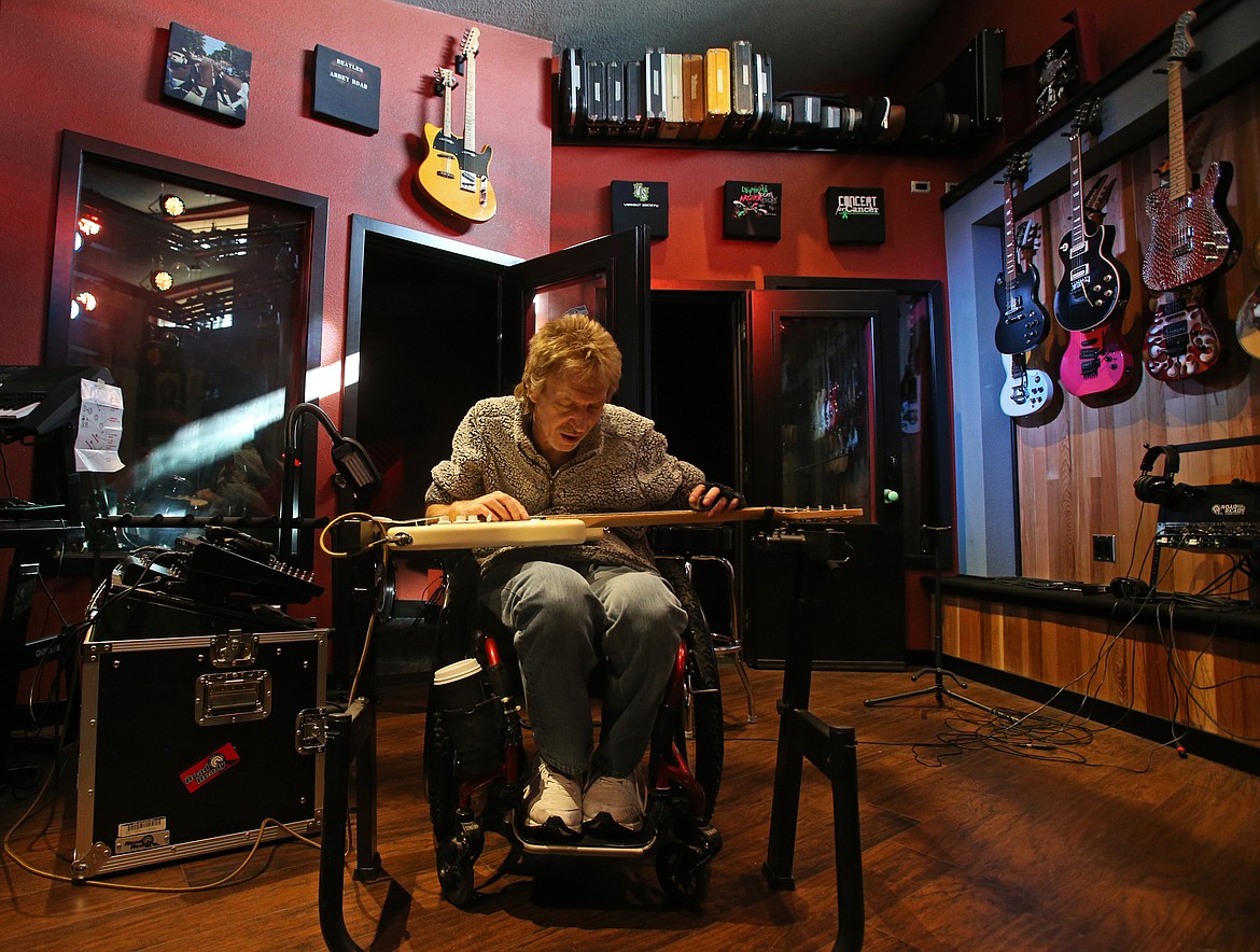 Tying shoes is one thing. But a quadriplegic playing guitar?