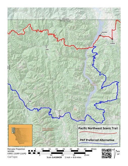 And they said their alternative route, which would travel east of Lake Koocanusa and south of U.S. 2, provides access for through hikers to Libby and Troy, towns where the backpackers can resupply, rest, shower, launder clothes and phone home.