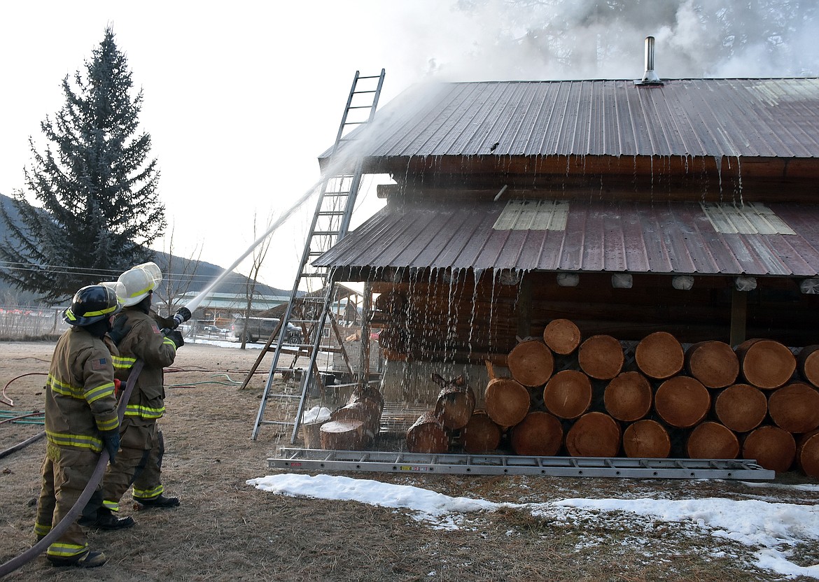 Firefighters from the Libby Volunteer Fire Department attacked the fire from both inside and outside the house. Around 8:30 a.m. a ladder truck arrived, allowing firefighters to remove the metal along the roof’s ridge and pour water directly on the smoldering fire.