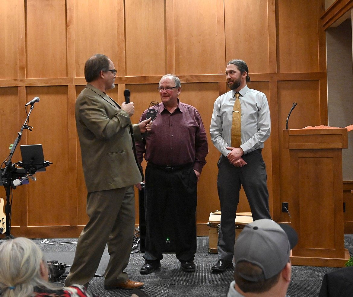 Spokane musician, Kicho Forrest, provided dynamic acoustic and electric guitar with country and classic rock vocals. Forrest was accompanied on the drums by Bret Smith of Newport. A custom, hand- crafted metal plaque was presented to Swanson. Ten Newport High School Health Occupation Students of America Club and four Priest River Lamanna High School National Honor Society students served each of the six food courses and graciously accepted the generous audience’s tips of over $700 toward their clubs’ fundraising efforts.