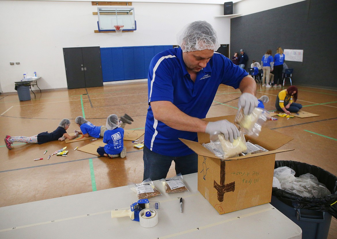 North Idaho Christian School's big meal-packing day was a part of its $100,000 fundraiser to improve the school, which was built more than 30 years ago and is in need of repairs. Through Feed the Need, a global organization, the school is helping others while helping itself.