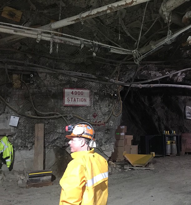 He helped Scott Hogamier and Jason Chambers install bolts in 16 stope in Lucky Friday.