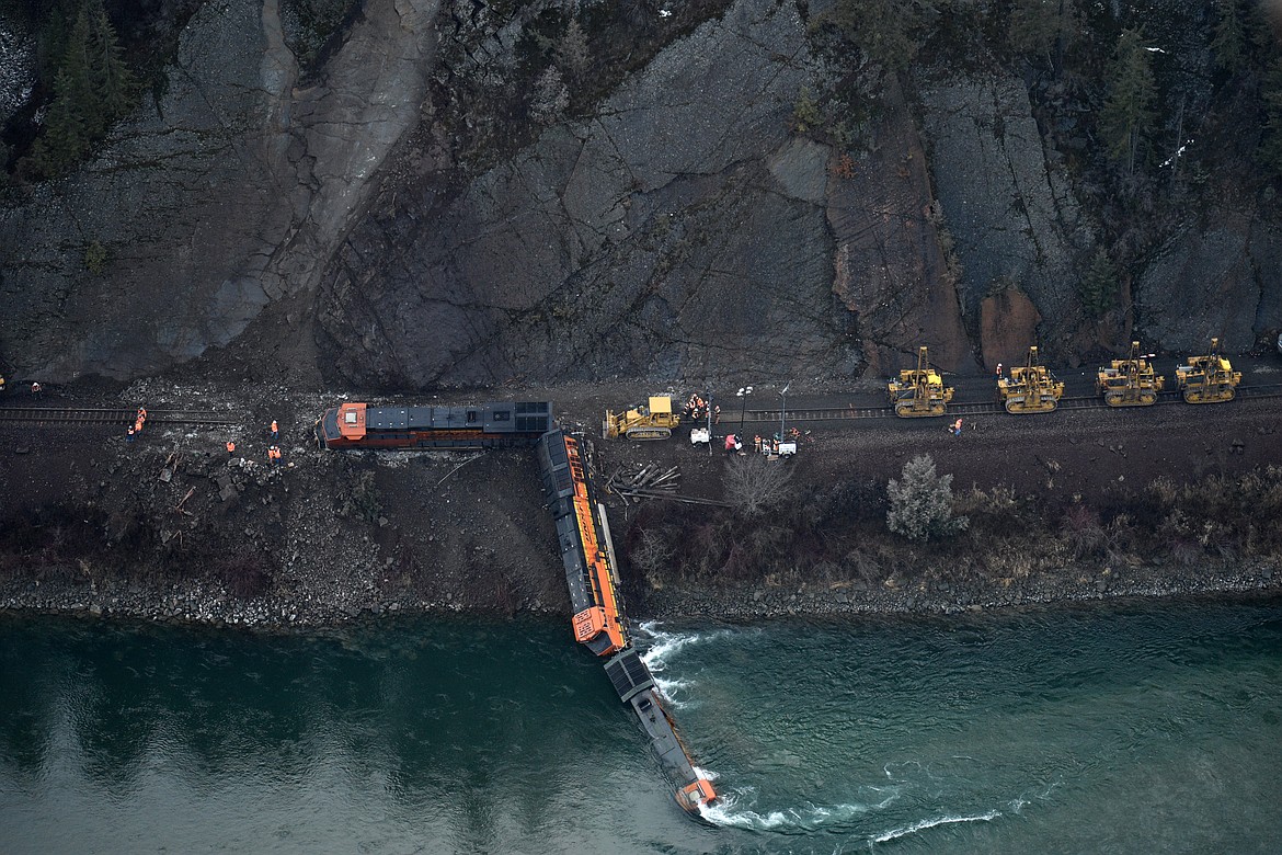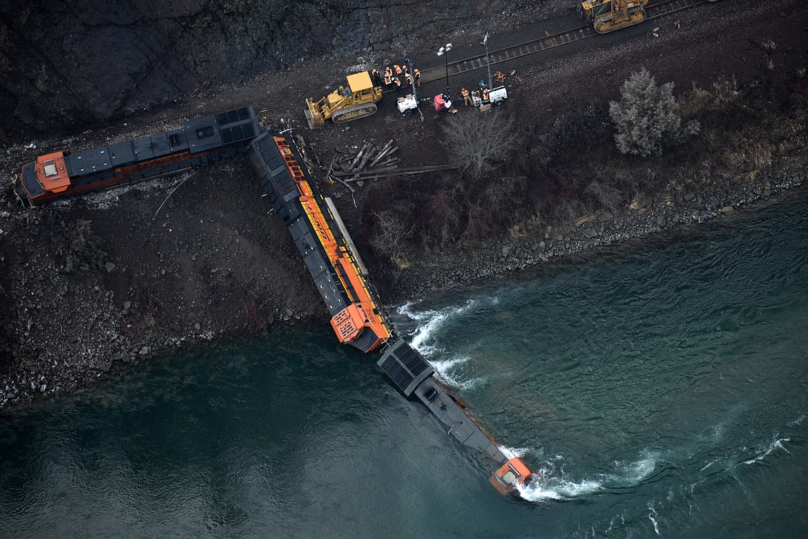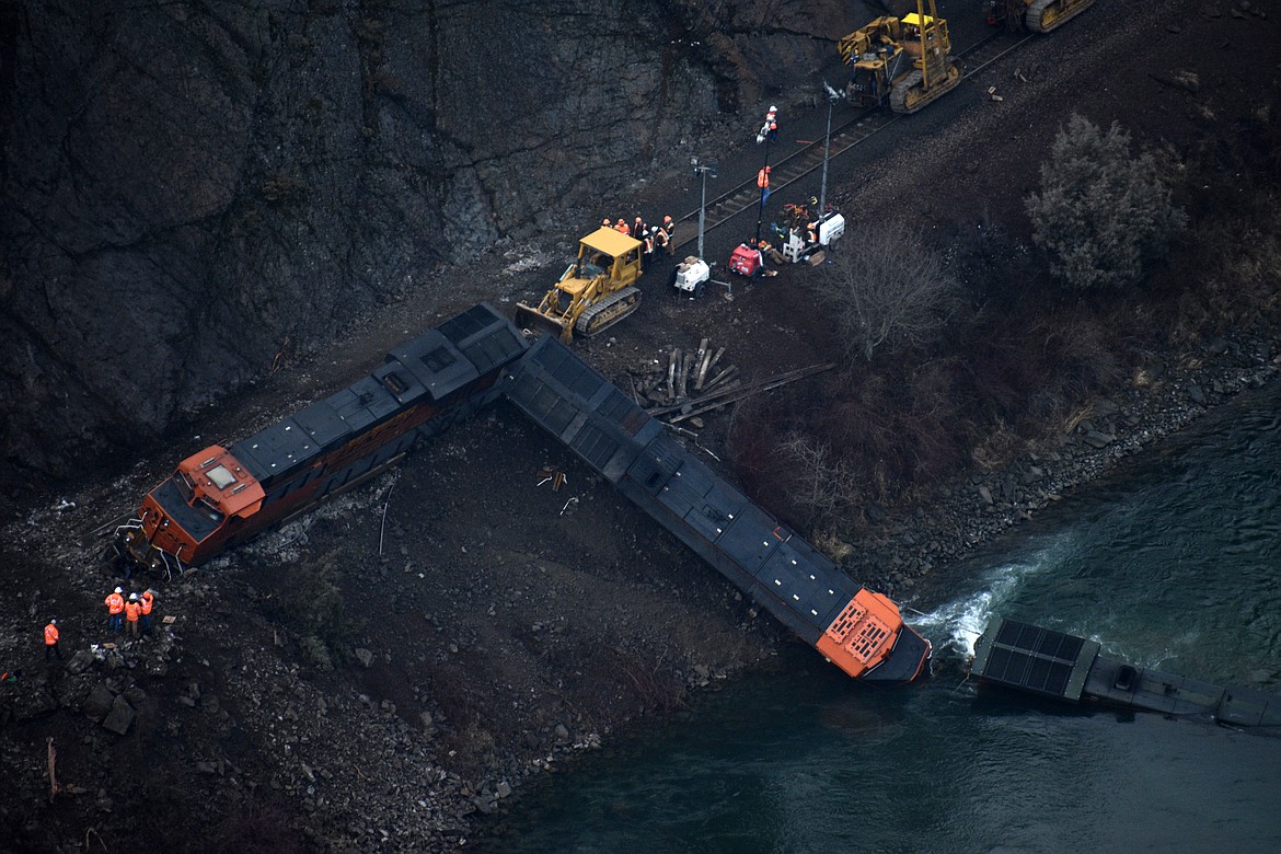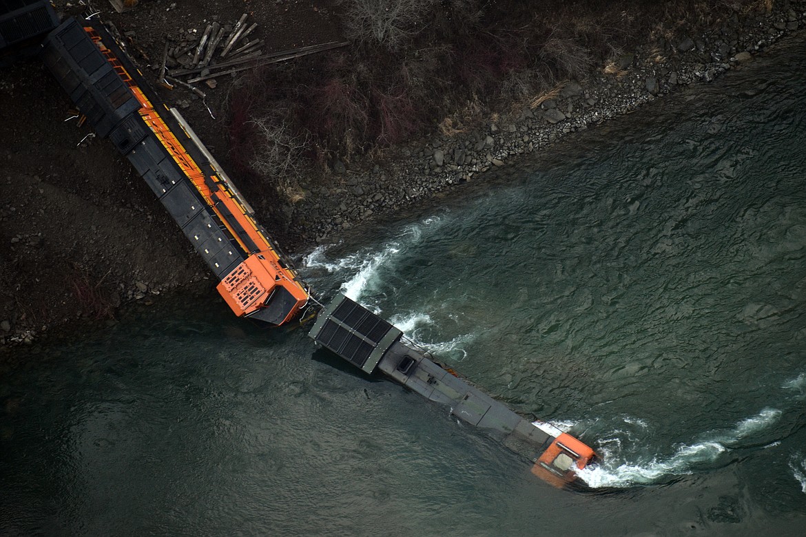 The two-person crew — a conductor and an engineer from the Spokane/North Idaho area — were not injured when the lead locomotive plunged into the Kootenai River, where they were rescued by Boundary County Sheriff’s Marine 1 jetboat just before 11 p.m. Jan. 1.
