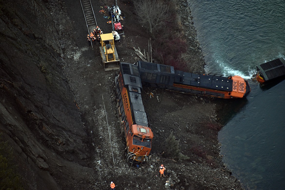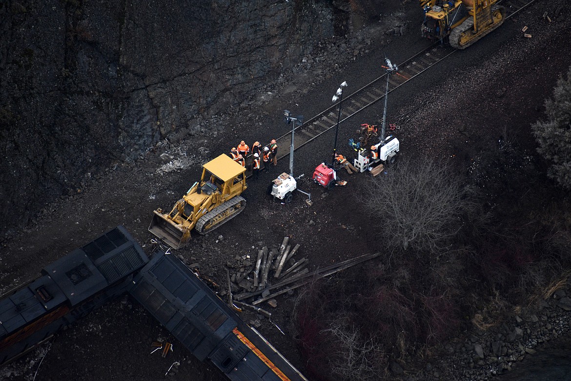 The work to re-rail the locomotives and cars follows Wednesday’s rockslide, which derailed six cars and the three locomotives of the mile-long BNSF Railway train enroute from Minneaplis, Minn., to Pasco, Wash. Various personnel responded within minutes of the derailment, which was reported at 8:45 p.m.