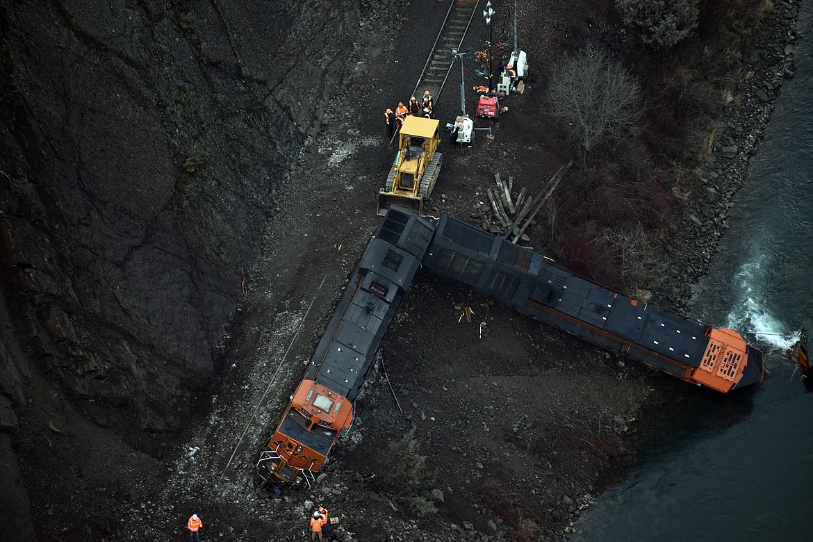 The work to re-rail the locomotives and cars follows Wednesday’s rockslide, which derailed six cars and the three locomotives of the mile-long BNSF Railway train enroute from Minneaplis, Minn., to Pasco, Wash. Various personnel responded within minutes of the derailment, which was reported at 8:45 p.m.