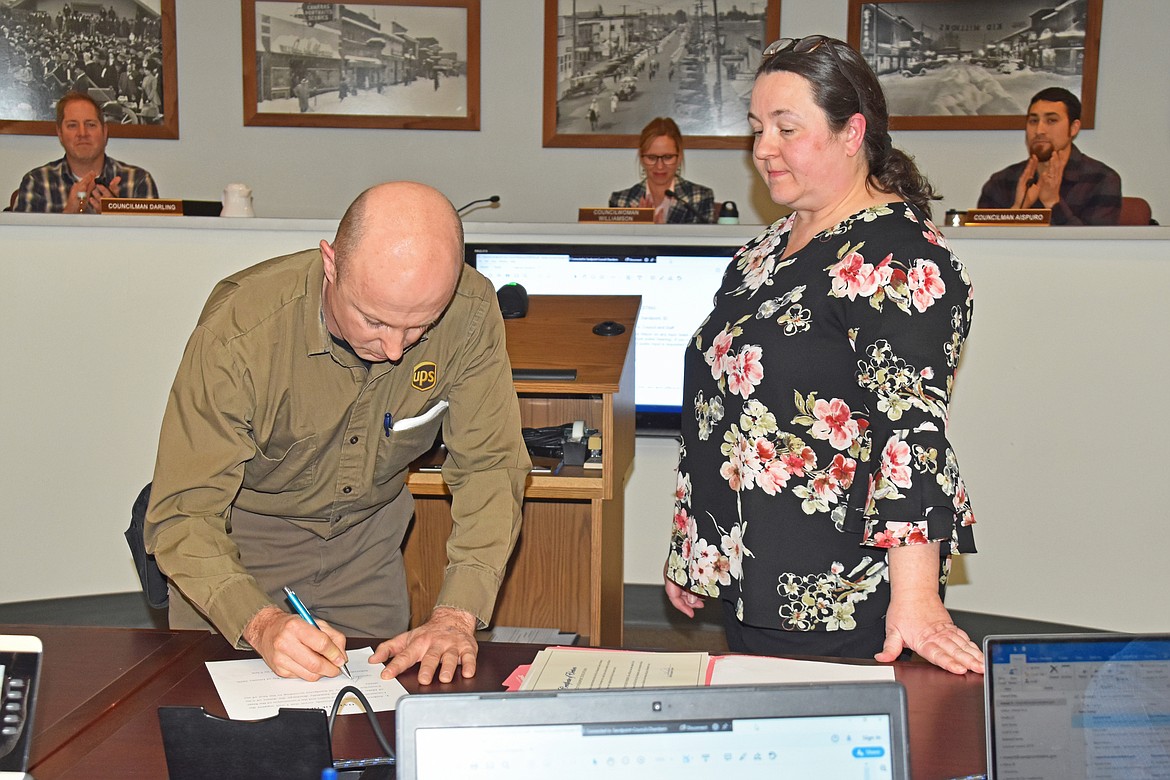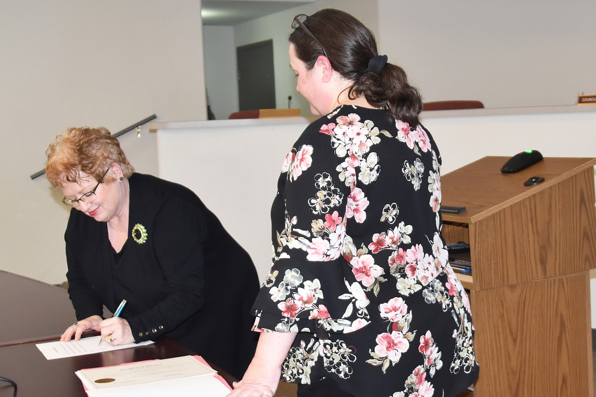 With that said, Eddy vacated his seat and City Clerk Melissa Ward proceeded to swear in incumbent council member Deb Ruehle and new council members, Kate McAlister and Andy Groat. Mayor Shelby Rognstad, who was absent, had already been sworn in at a December meeting.
