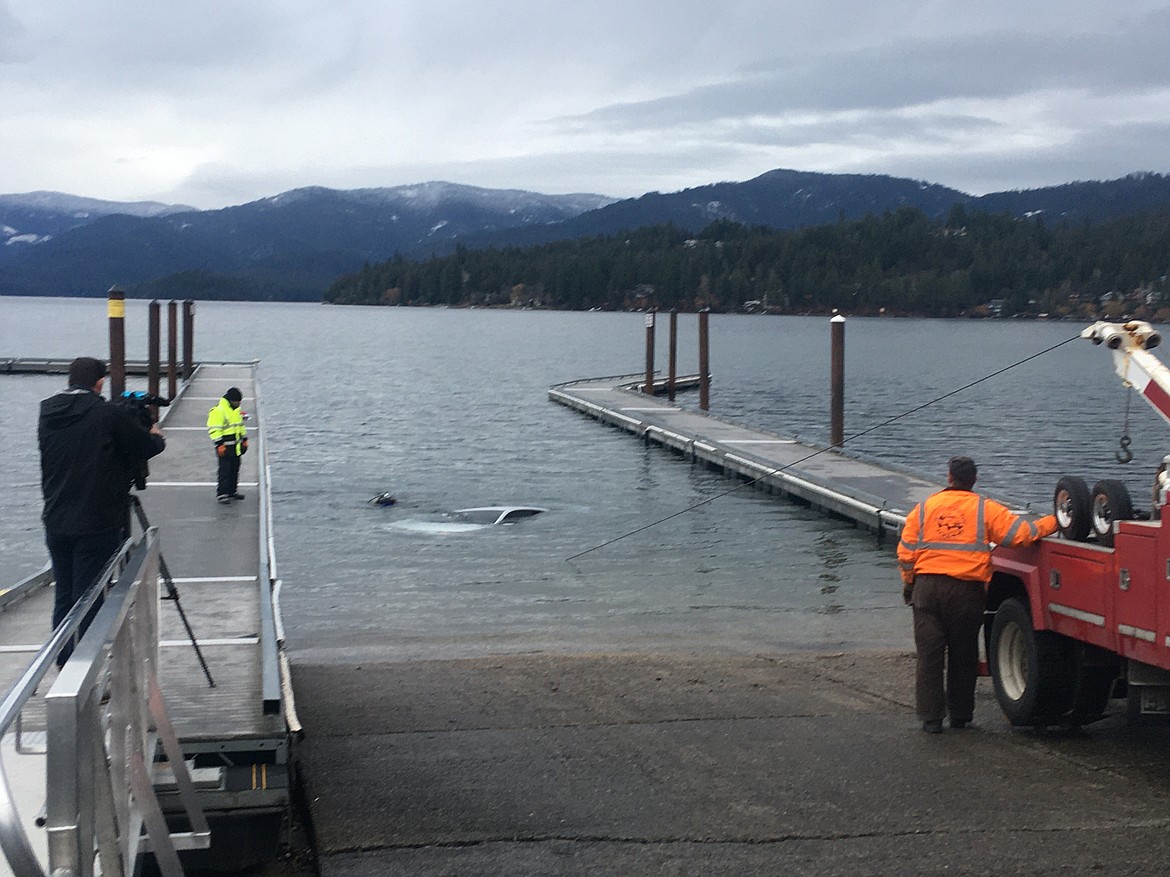 First responders rescued a woman after her car plunged into Hayden Lake on Tuesday.