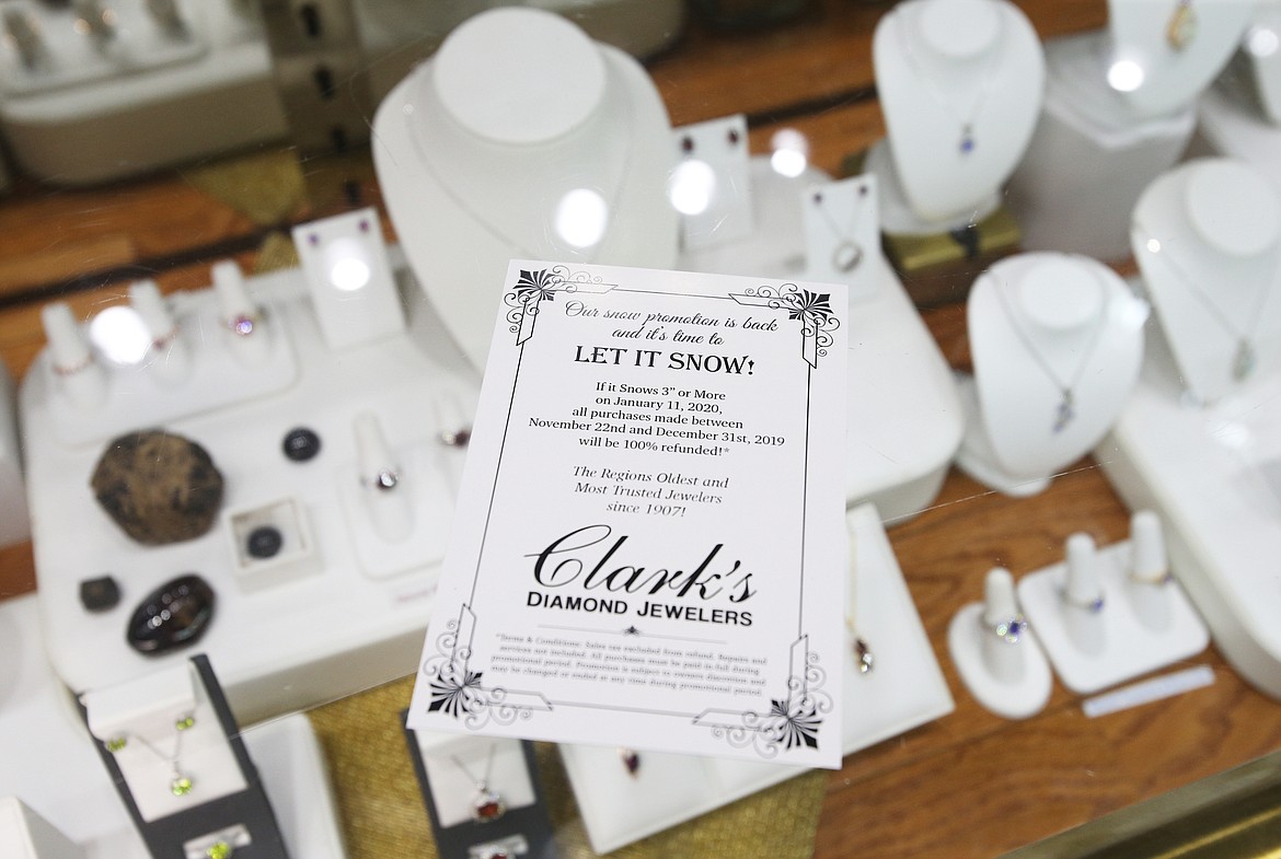 Backed by an insurance policy, Clark’s Diamond Jewelers in downtown Coeur d’Alene will be paying off a bet if Mother Nature cranks up the tears and turns down the thermostat.