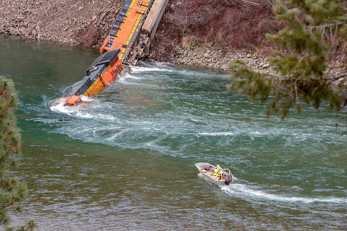 Crews have been working around the clock since a New Year’s Day landslide derailed a BNSF Railway train and sent the lead locomotive and its crew into the Kootenai River. In total, three locomotives were knocked off the track with one ending up in the river, another on the river bank and a third that ended up in the right of way. Another six cars were also derailed by the landslide, which was reported about 8:45 p.m. on Jan. 1.