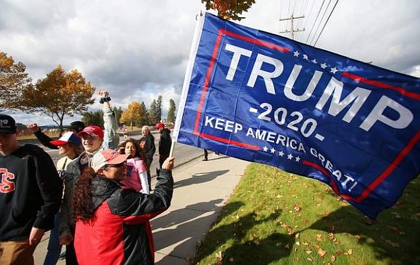 More than a hundred people showed up for an October pro-President Trump rally Baron organized on the corner of Ironwood and Northwest Boulevard, with three protesters showing in response.