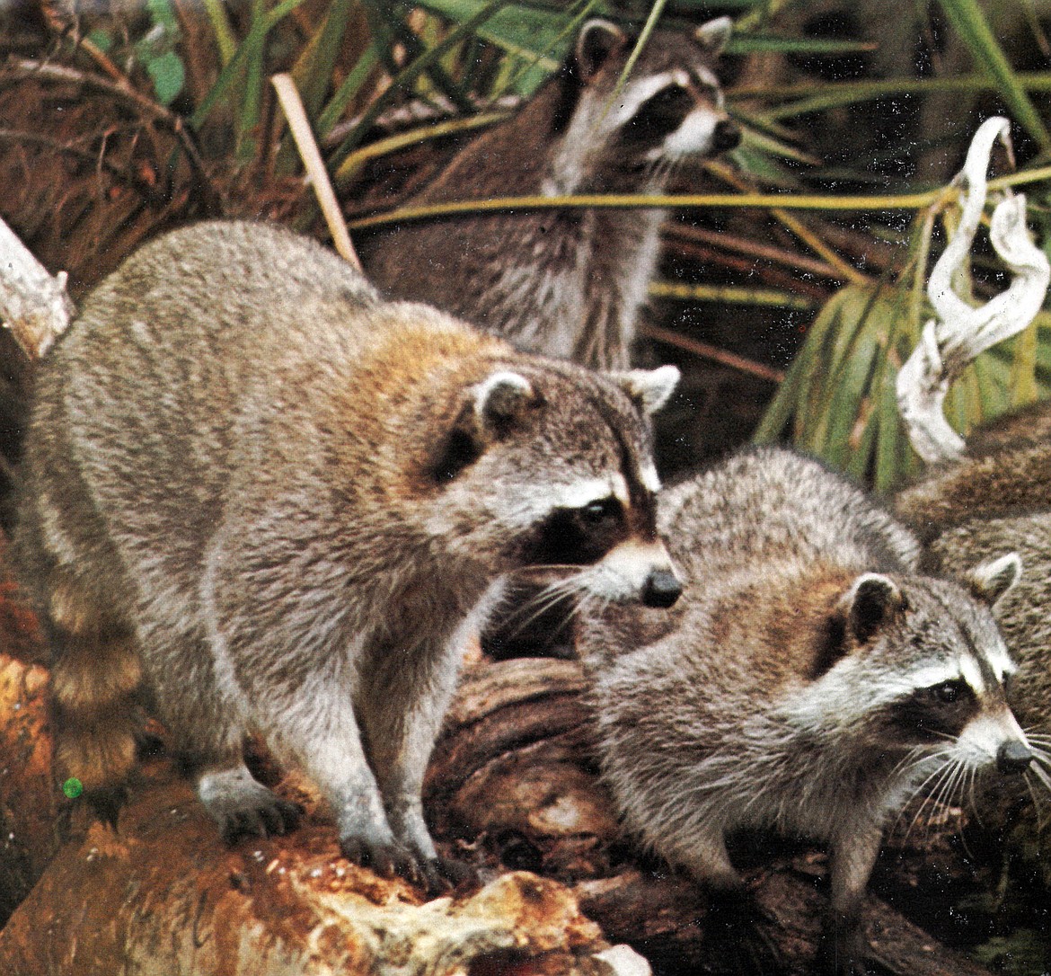 So of course, when a huge and adorable Mama Raccoon showed up on the front deck late one night with three equally adorable “babies” (each bigger than a bulldog), I excitedly ran for the fridge to see what they might like. All I had was some carrots, so I cut them up and tossed the pieces out, hoping they’d be acceptable. Too, remembering that ‘coons washed their food before eating, I set an old pie-plate full of water outside the door. I returned to bed, grateful for the opportunity to have perhaps sated some of their needs.