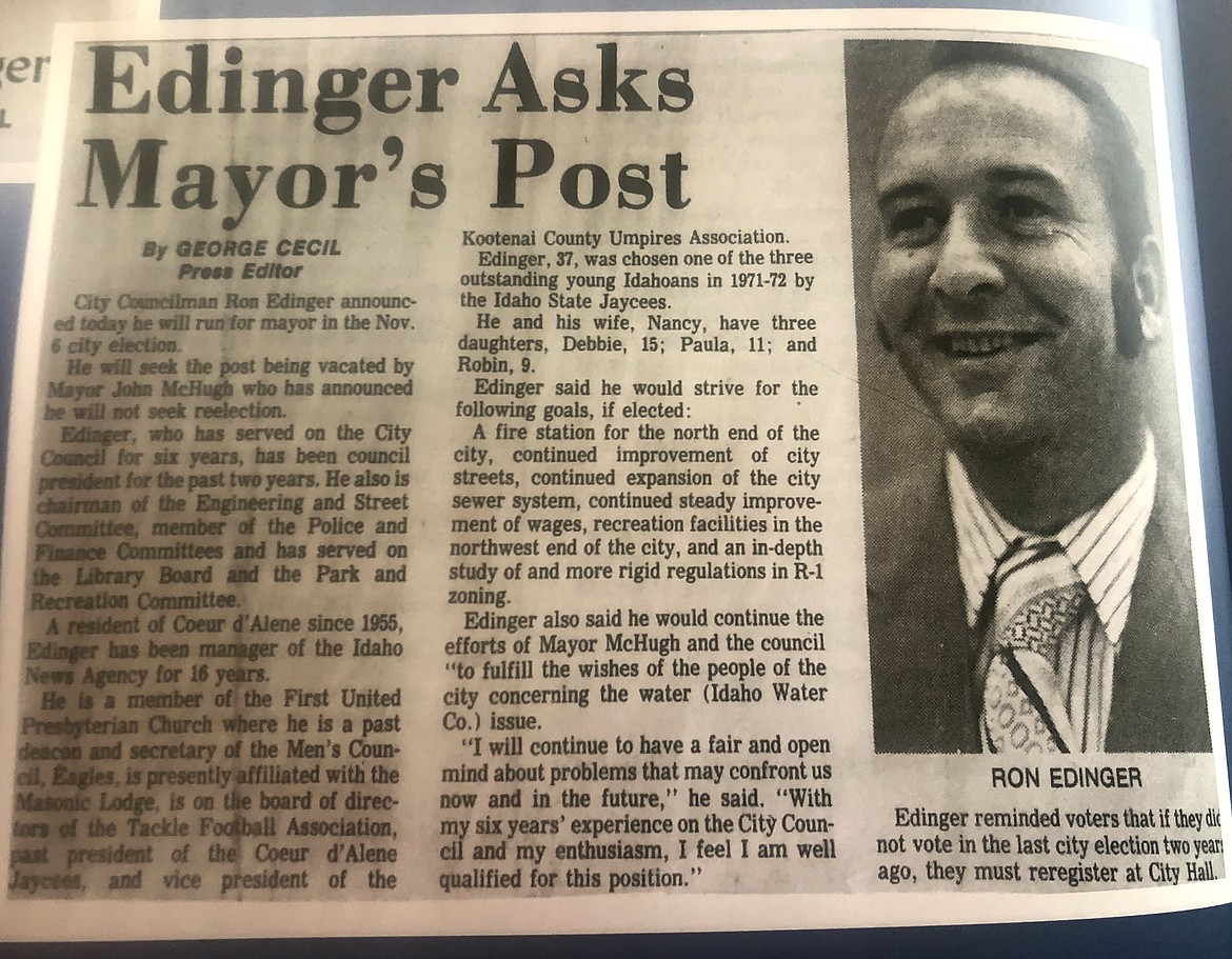 For anybody who has followed Coeur d’Alene politics over the decades, there are a few words that sum up Edinger: Blue-collar. Empathic. Listener. Personable.