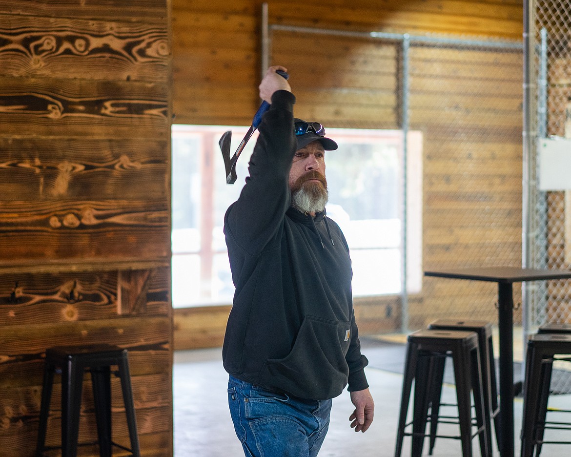 “It’s different. It brings out a different person in everybody. Even if you were to stop here for five minutes and throw a hatchet, it’s going to turn your whole day around. At first I just thought it sounded cool, but once you actually get doing it, it’s super fun,” he says.