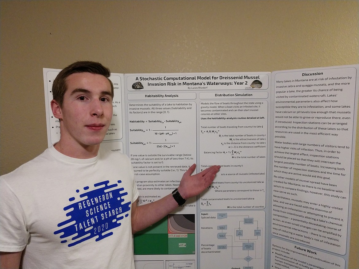 Glacier High School senior Luke Ritzdorf’s scientific and mathematical research to model and analyze the risk of invasive mussel contamination in Montana’s waterways has landed him a spot among 300 high school seniors named Regeneron Science Talent Search scholars, a program of the Society for Science & the Public.