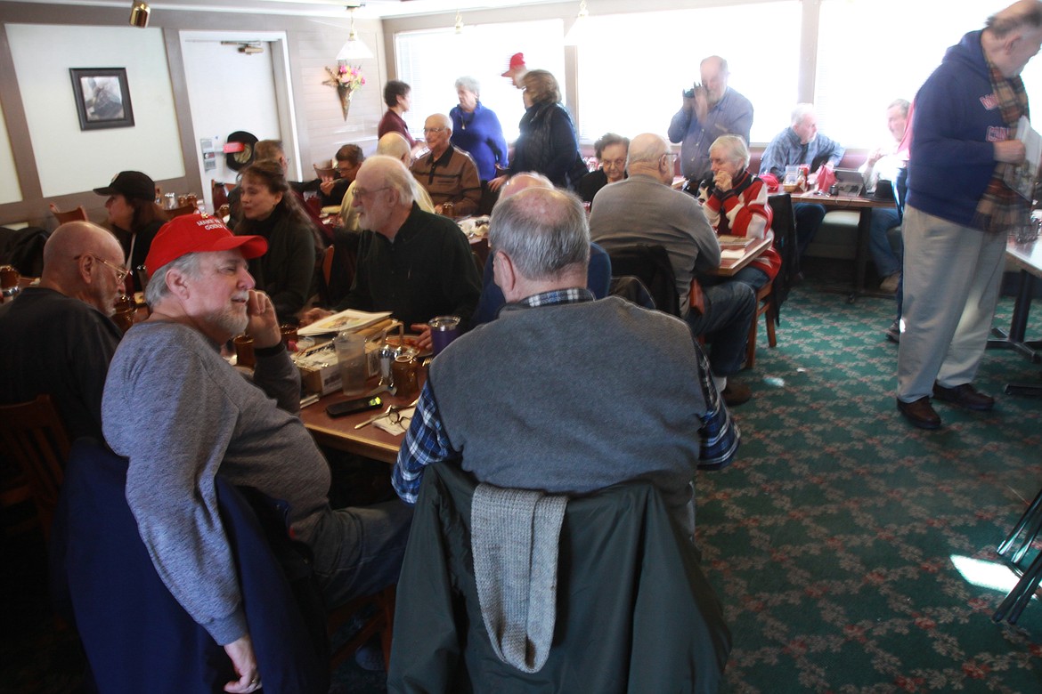 Most of the members of the group, which sometimes overflows during the weekly Wednesday morning meetings in the back room of JB’s, have similar affiliations.