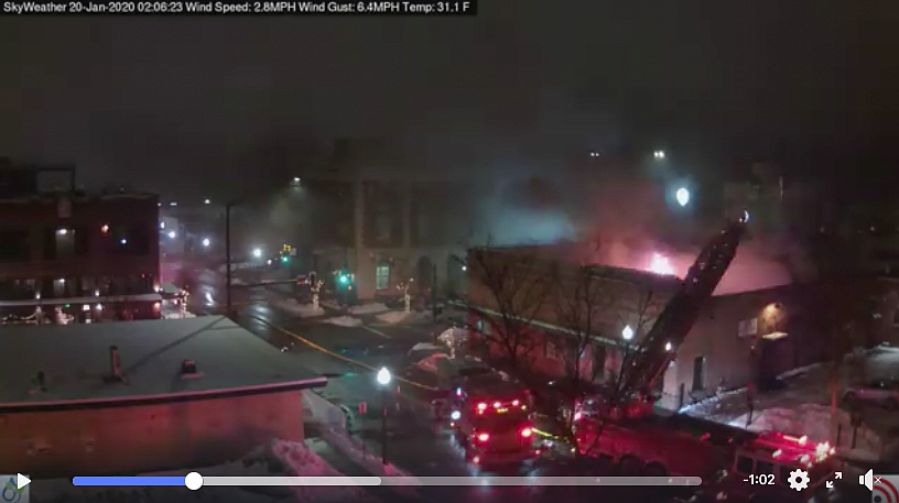 The University of Idaho weather station above the Innovation Den in downtown Coeur d’Alene captured footage of the fire, from the time it started until well into daylight.