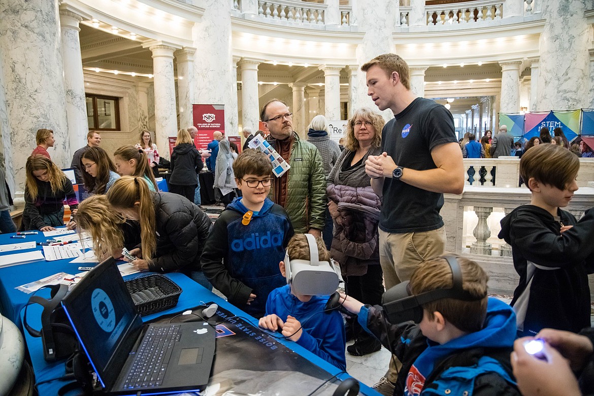 Organized by the Idaho STEM Action Center — which counts Rosser among its board members — the event attracted students, educators, elected officials, businesses, and STEM advocates from across the state. Kids taught lawmakers how to code, explore virtual reality, design electronic circuits with Play-Doh, and interact with robots and drones.