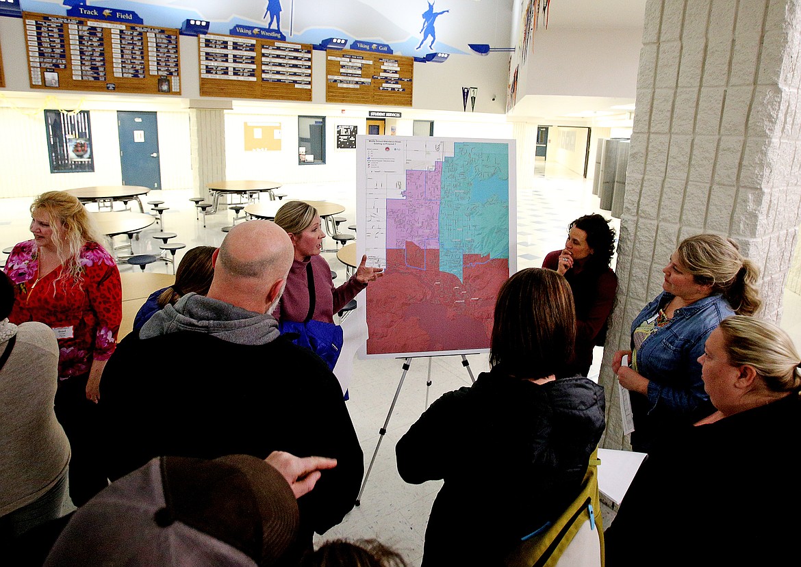 “We’re lucky because we just happen to be in an area of Hayden where the boundaries aren’t changing,” he said. “I don’t envy the job that the people have to do, just going around from poster board to poster board hearing the different comments of parents who are affected.”