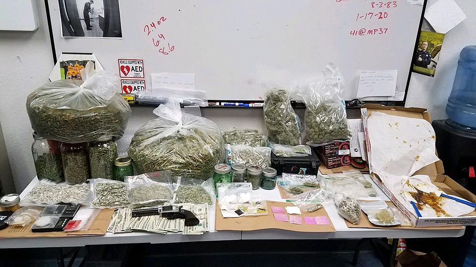 Deputies located a large amount of cash, a stolen firearm, 10 plus pounds of marijuana, methamphetamine, cocaine, mushrooms, and LSD.